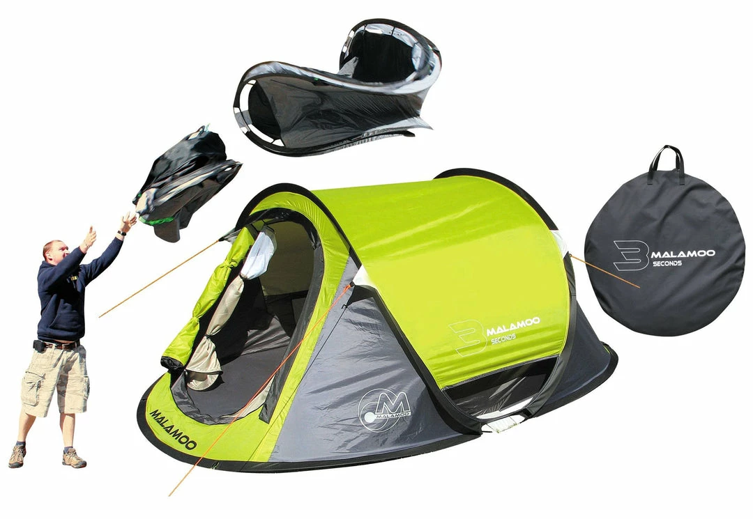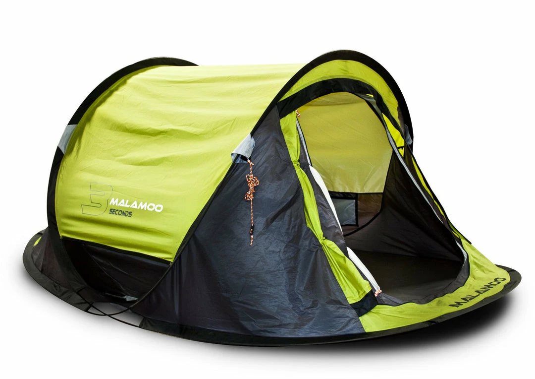 Malamoo Tents by Oztent are quality pop-up tents that self erect in just 3 Seconds! No more fiddling around with poles and flys. The poles are fixed to the skin. You just throw it in the air and it self erects. These tents have a waterproof Fly (1500mm) and breathable inner all built in. Excellent superfine insect mesh will keep out the all the bugs