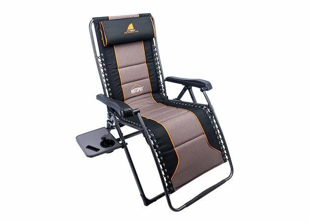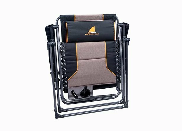 The Oztent King Komodo HotSpot Chair is the ultimate in luxury camp chairs for all seasons. It boasts OZTENT’s HotSpot technology that allows an incredible passive heating experience for those cold days simply by slipping in your (included) HotSpot pouch. It is super high quality aluminium alloy construction using luxurious 600D polyester fabrics. It is fully padded and has a weight rating of 200Kg. It easily reclines and locks in any place for maximum relaxation. The pull-out side table incorporates recessed drink and phone holders.