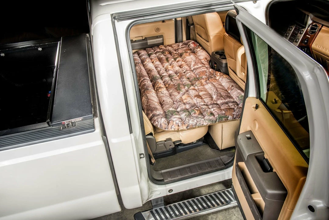 The Inflatable Backseat Air Mattress is now in a Realtree camouflage patern, perfect for full size Trucks & SUV’s. No need to rent an expensive hotel room anymore by taking vehicle sleeping to the next level of comfort with this Inflatable Travel Mattress. The mattress inflates easily and fits into the back seat of most vehicles.