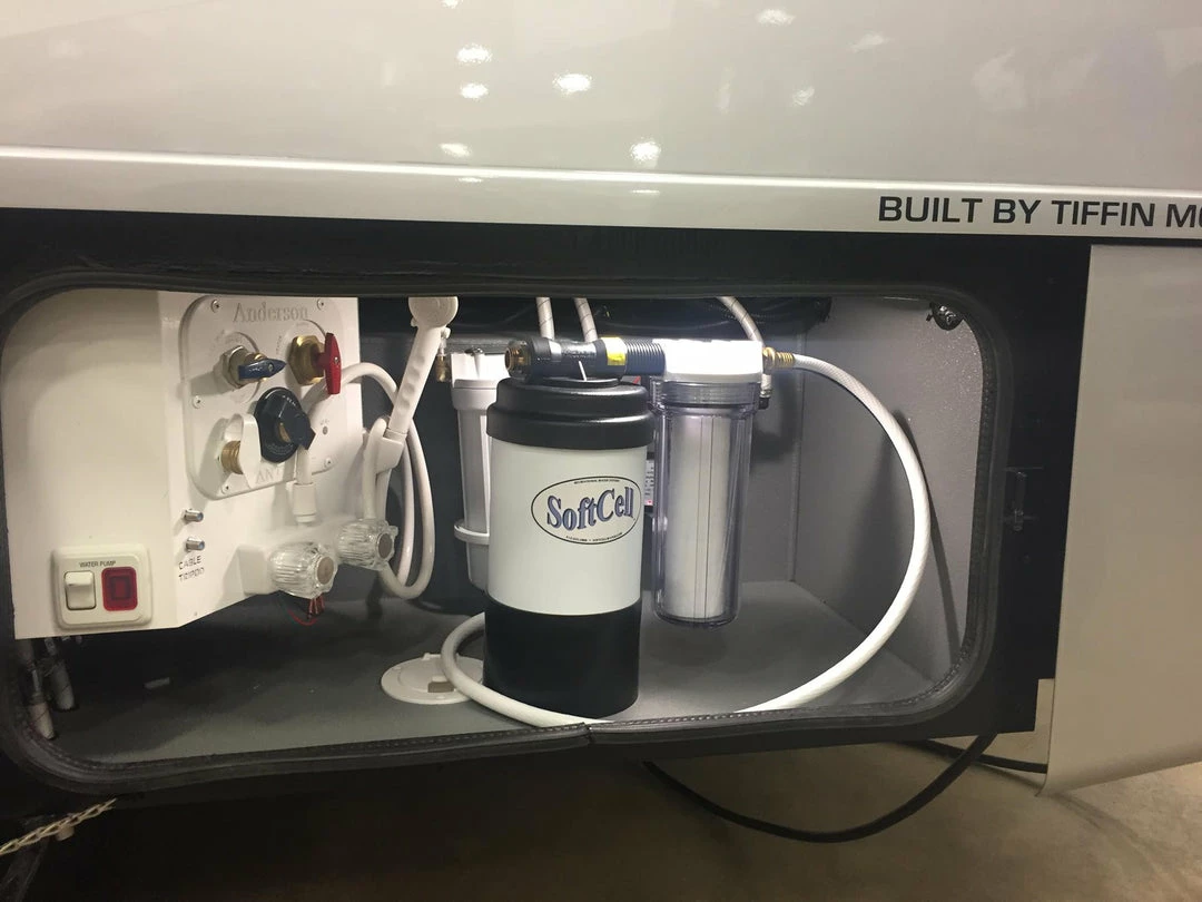- The SoftCell Remote RV portable water softener with detached Sediment Pre-Filter is a flexible system for owners who have limited space or need flexible placement options. Softens up to 5,000 gallons….