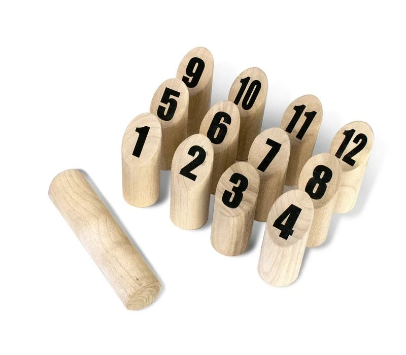 Also known as mölkky in Finnland, our Scatter Outdoor Game is a lawn tossing game that is sweeping the nation! Toss the dowel underhand and knock over the skittles. Topple one skittle and get the amount on the skittle, topple multiple skittles and get the amount of points equaling the amount of skittles toppled. First one to 50 wins!